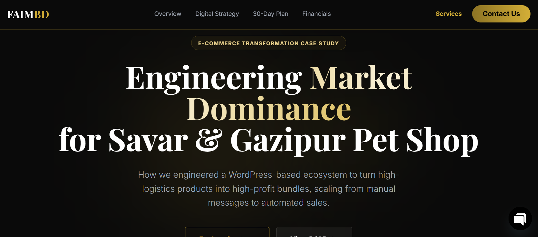 একটি বিস্তারিত কেস স্টাডি যা পেট শপের অনলাইন উপস্থিতি ও ব্যবহারকারীর অভিজ্ঞতা উন্নত করার উপর ভিত্তি করে, যেখানে আধুনিক, মোবাইল-রেসপন্সিভ ডিজাইন এবং পণ্য ব্রাউজিং ফাংশনালিটি হাইলাইট করা হয়েছে।